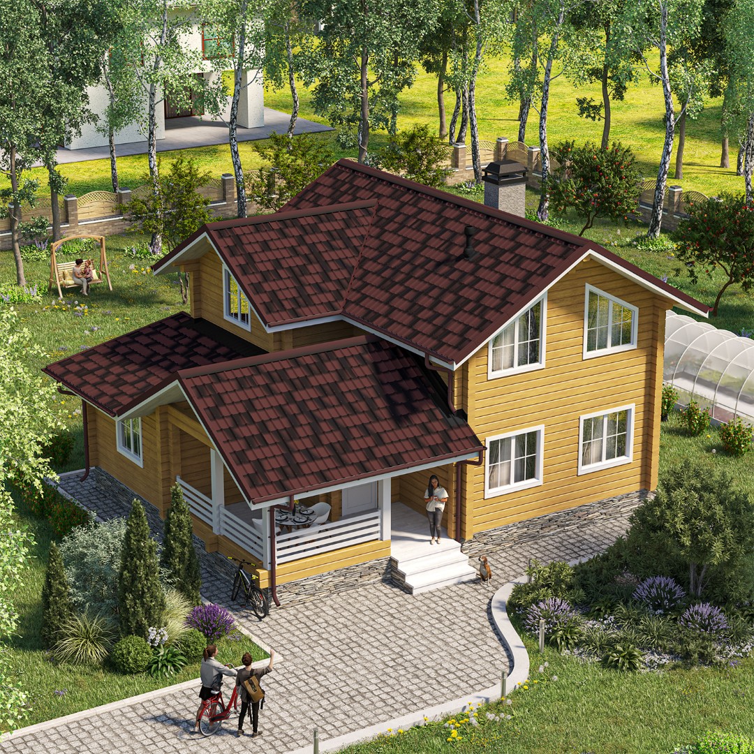 Она прекрасно сочетается с деревянными, каменными или домами из кирпича.