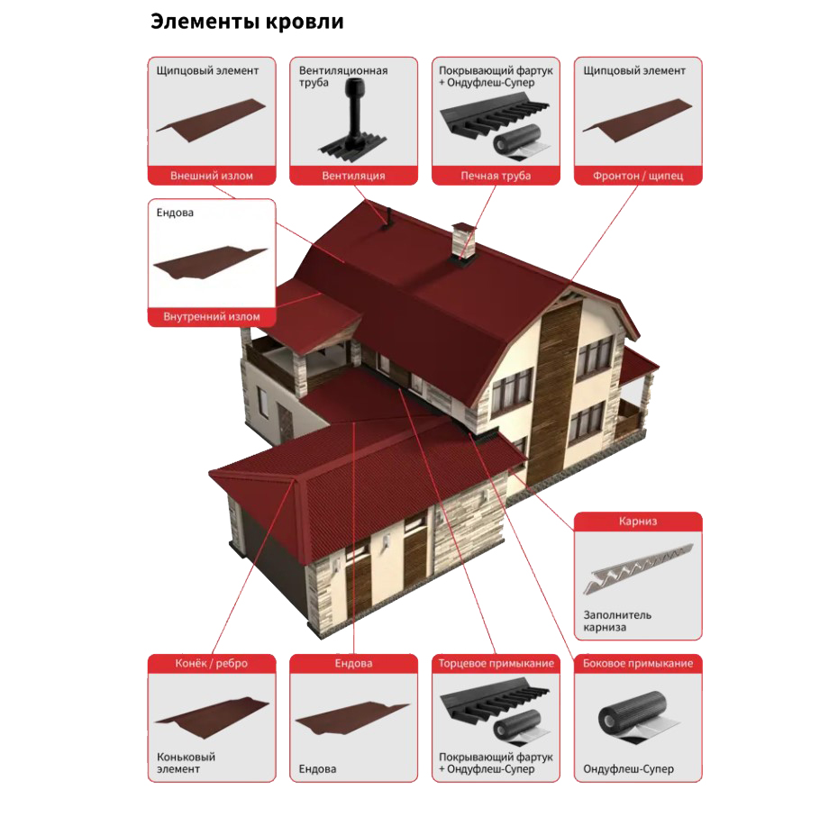 Щипец для Ондулина – доборный элемент покрытия кровли крыши.